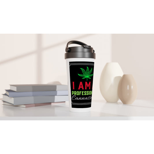 Cannabis Stainless Steel Travel Mug, Professional Cannasseur White 15oz